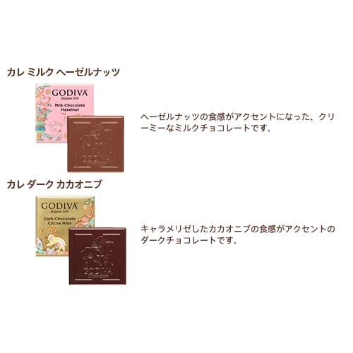 ほろ苦いカカオニブ入りのダークチョコレートとクリーミィなくちどけのヘーゼルナッツ風味のミルクチョコレートフレーバーのカレを詰め合わせました。