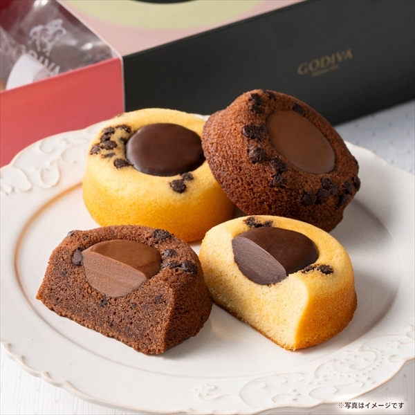 しっとりと焼き上げた生地の真ん中に流し込んだガナッシュと、生地に浮かぶチョコチップ。見た目も食感も楽しい、ちょっと贅沢な焼き菓子です。「ショコラ」と「ヘーゼルナッツ」の2つの味を詰め合わせました。