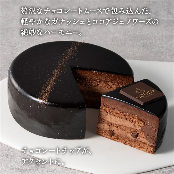 幾重にも重なる層が奏でるのは、濃厚なカカオの風味と繊細な食感のマリアージュ。チョコレートを贅沢に使ったムースで全体を包み込み、ふんわり軽やかなガナッシュとココアのジェノワーズが絶妙なハーモニーを生み出します。忍ばせたチョコレートチップが、ひと口ごとに楽しいアクセントを添えて。パティスリーの至福をそのままご自宅で。特別な日を華やかに彩る、ゴディバならではのプレミアムチョコレートケーキです。