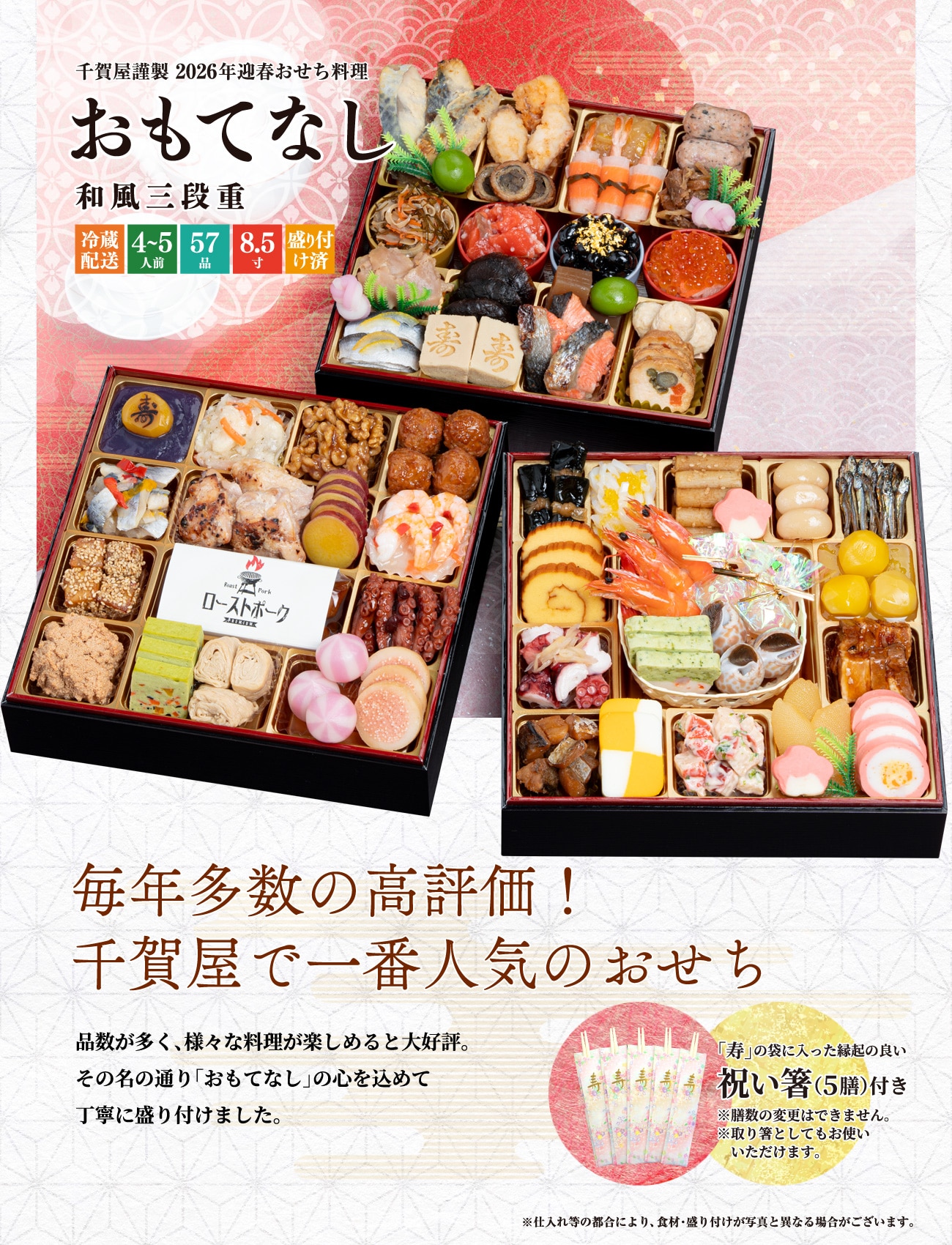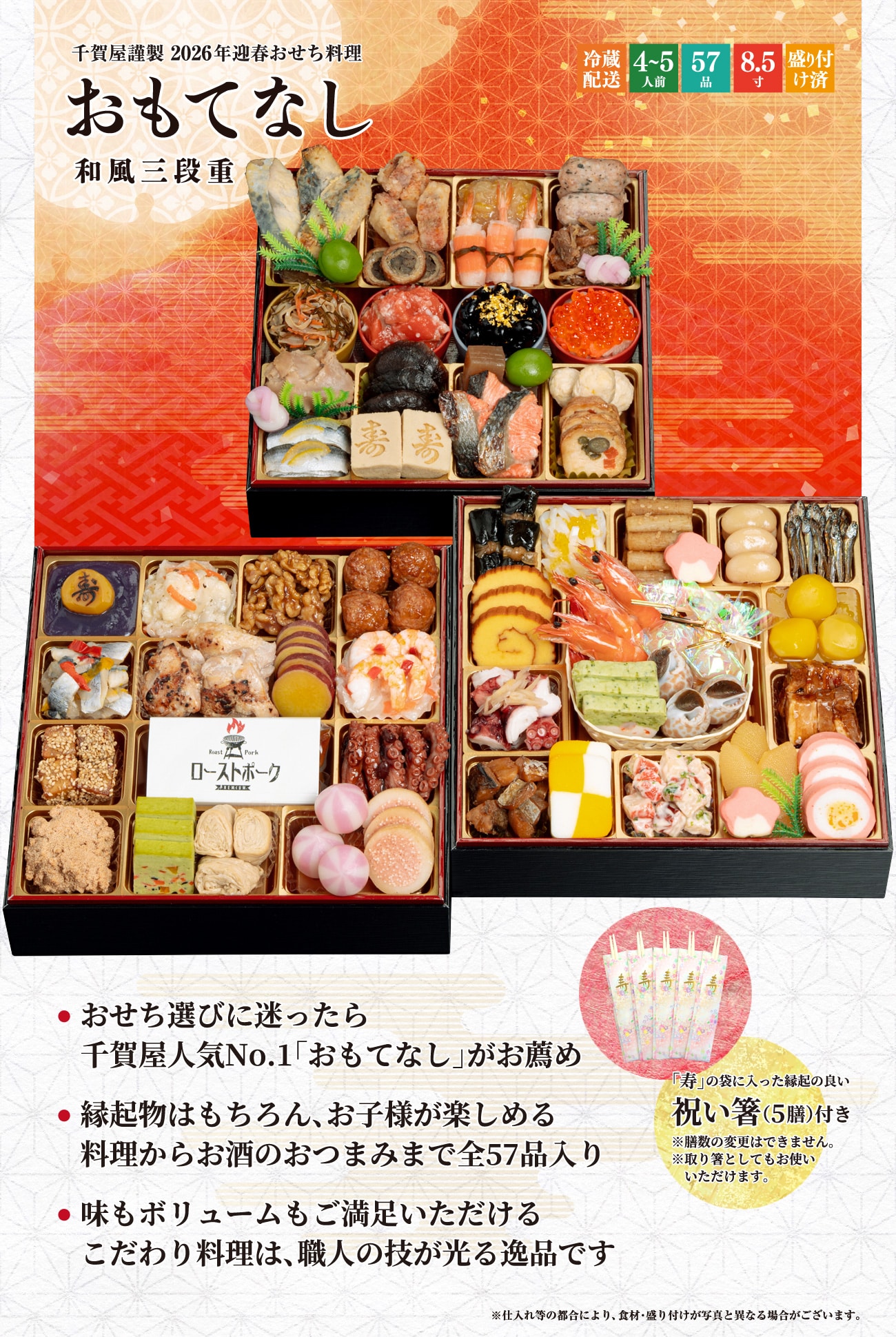 千賀屋謹製 2026年迎春おせち料理 「おもてなし」 和風三段重