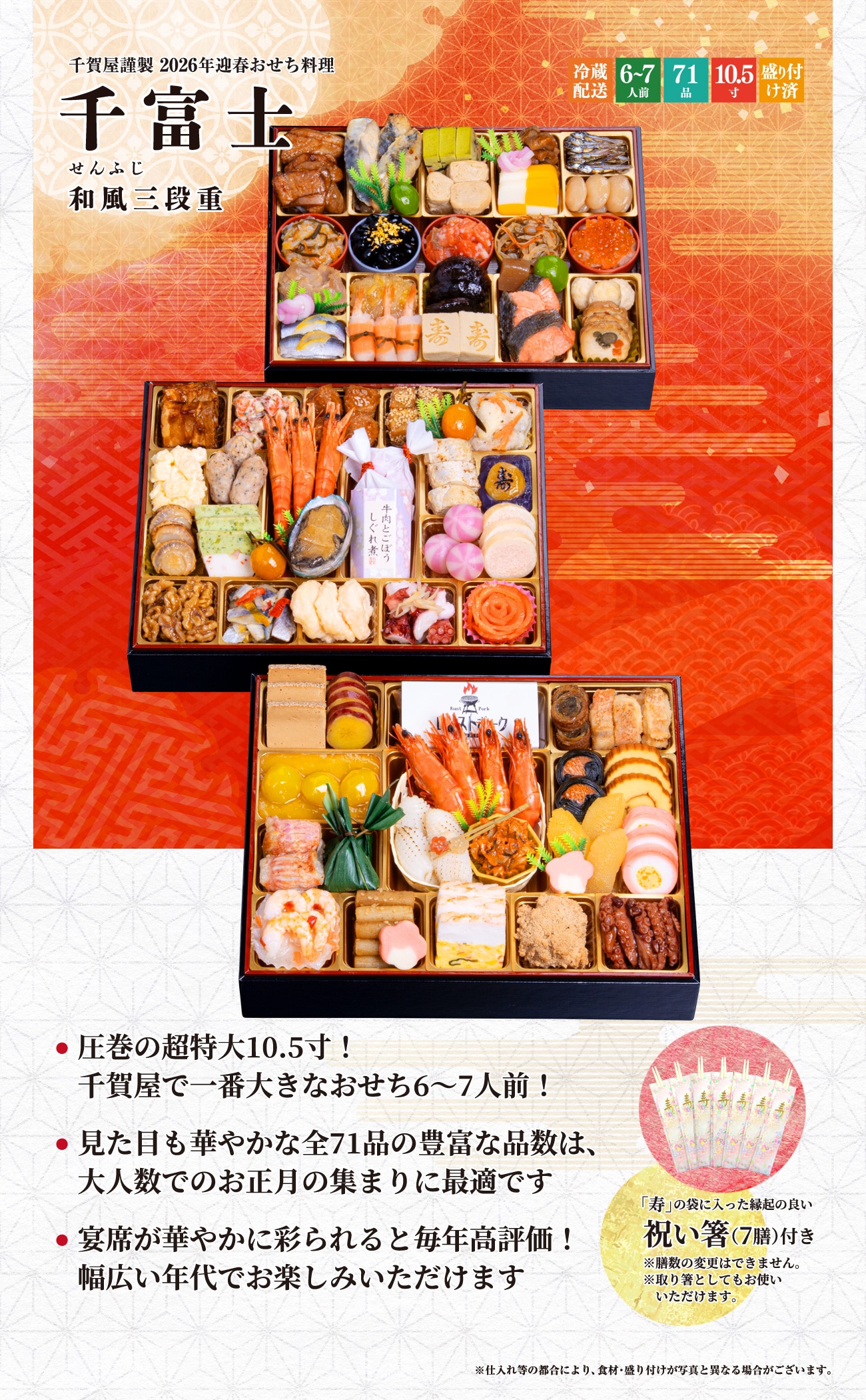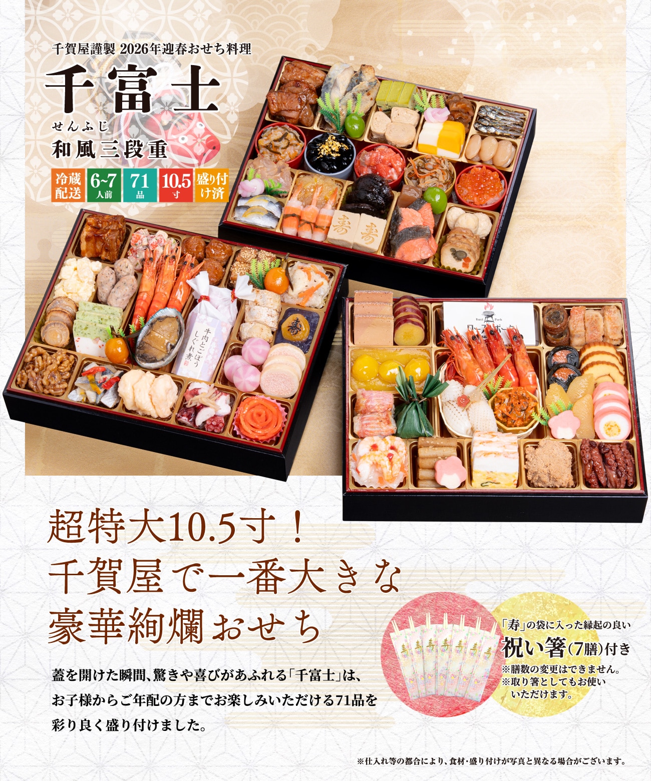 千賀屋謹製 2026年迎春おせち料理 「千富士」 和風三段重