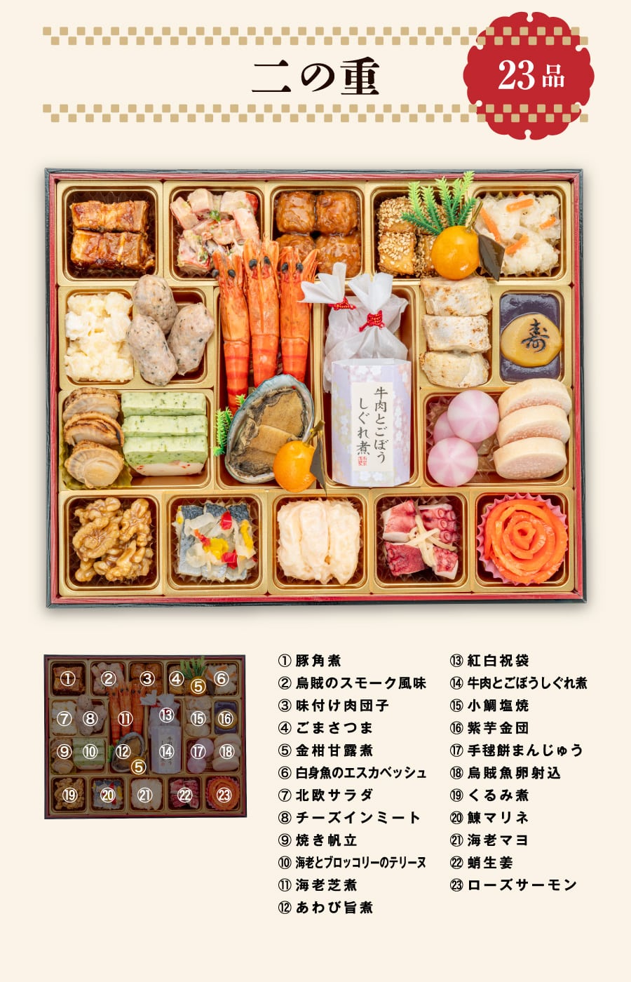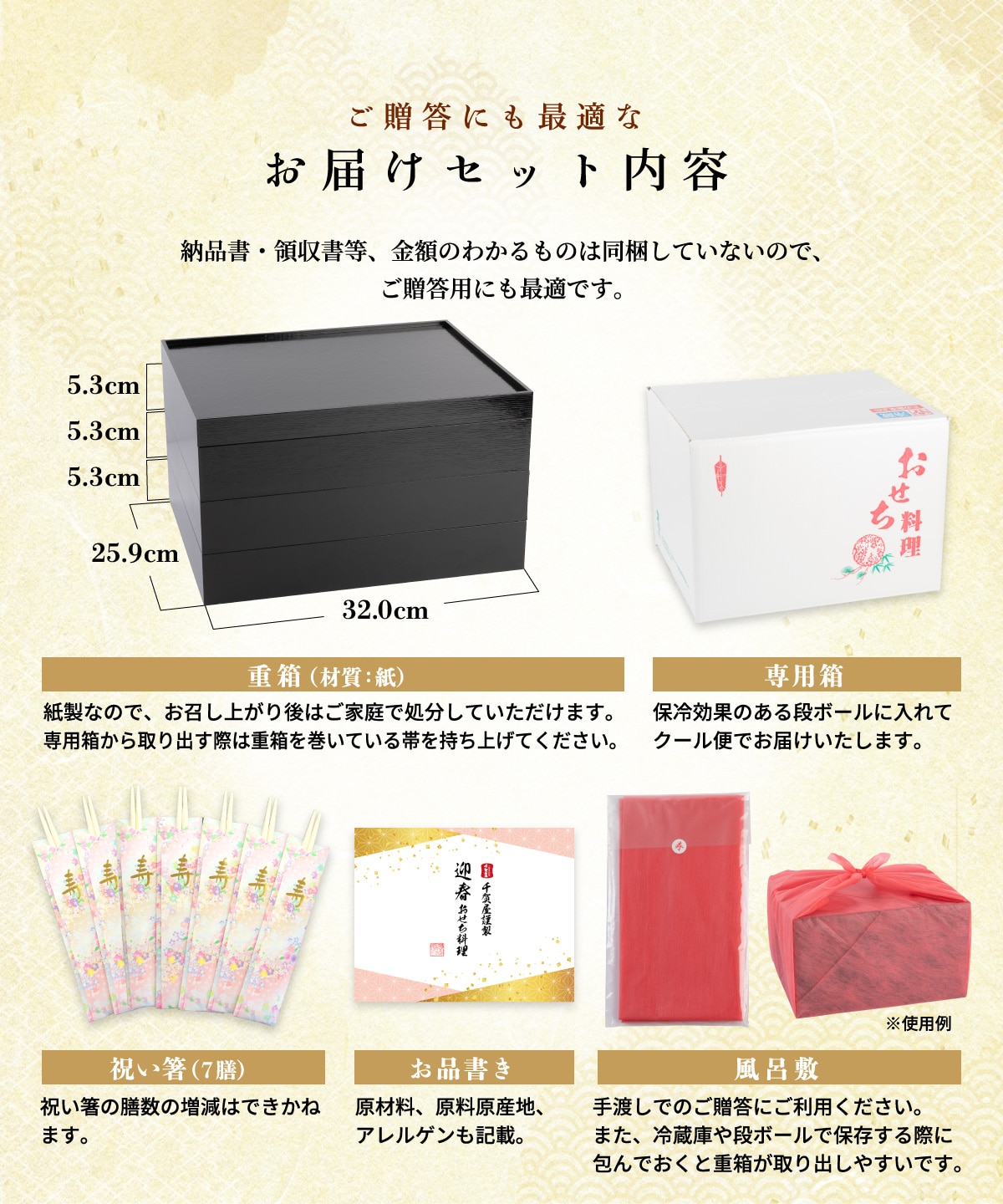 【同梱物】お品書き・風呂敷・祝い箸7膳