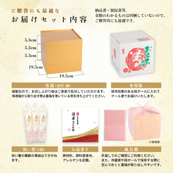 【同梱物】お品書き・風呂敷・祝い箸3膳