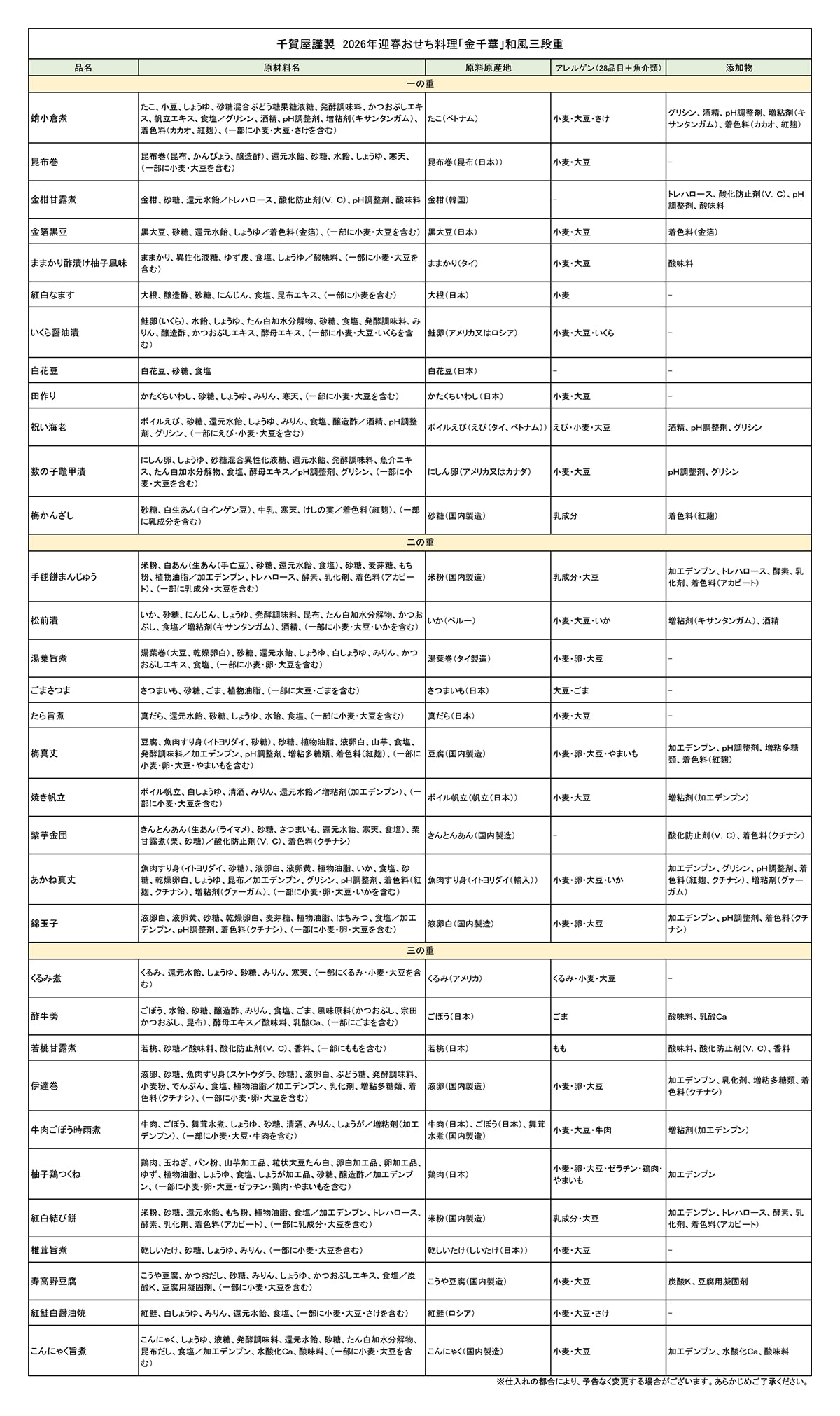 千賀屋謹製 2026年迎春おせち料理 「金千華」和風三段重
