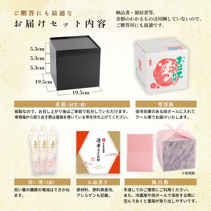 【同梱物】お品書き・風呂敷・祝い箸3膳
