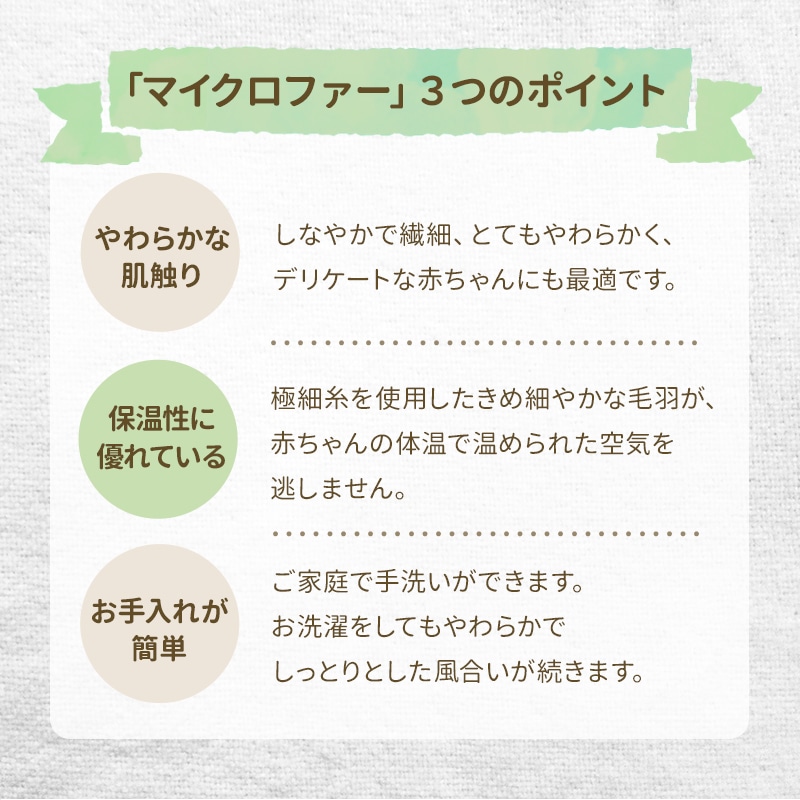 通気性も兼ね備えた保温性の高いマイクロファー素材で、なめらかな毛並みで高級感があります。