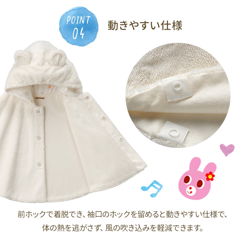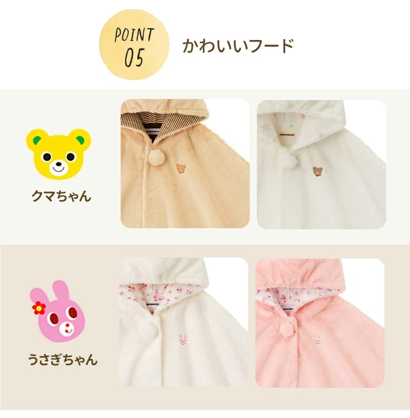 フードはお耳付きでくまちゃんやうさちゃんに変身。