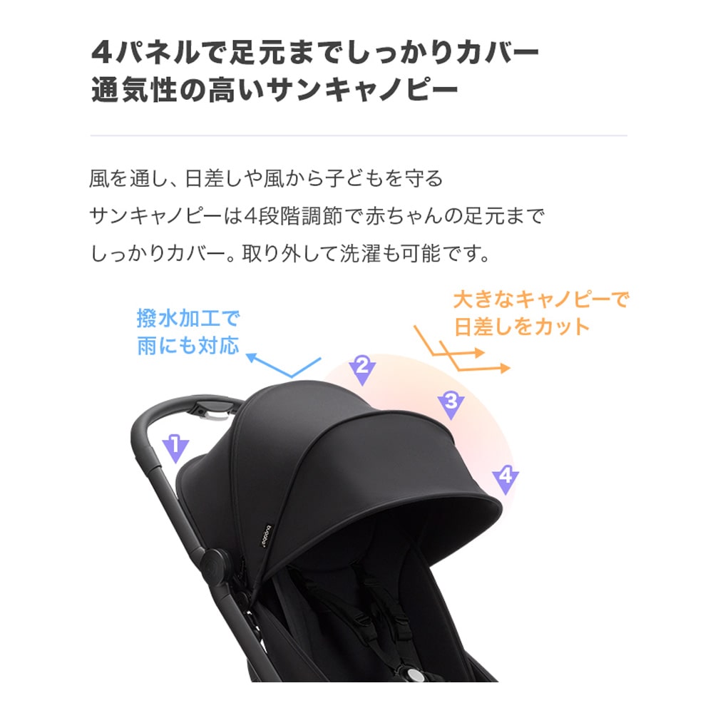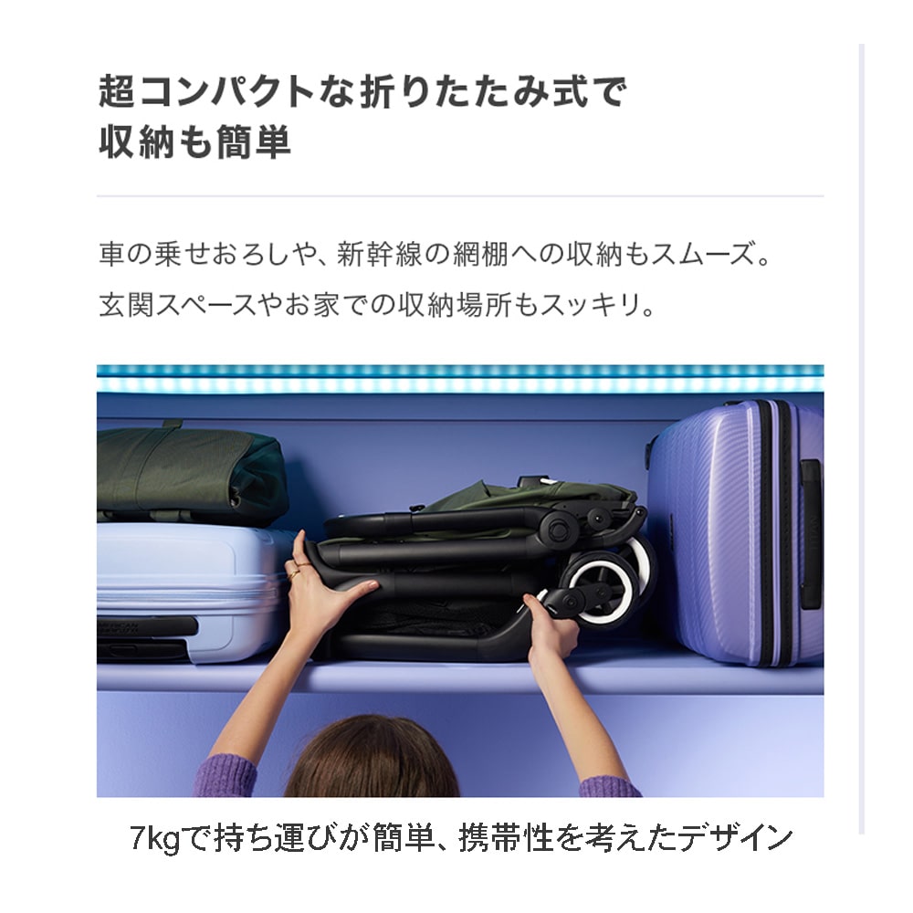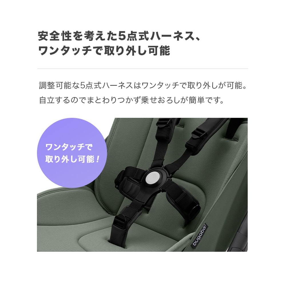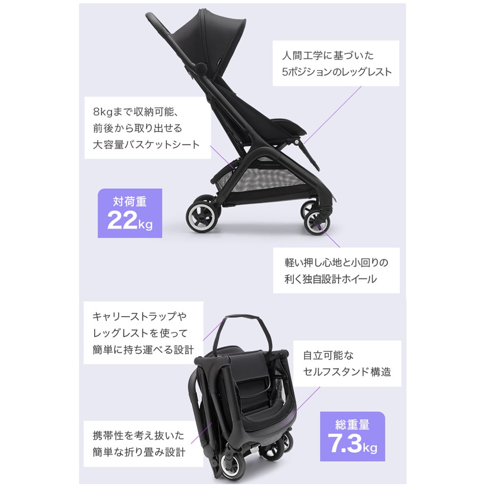 通常別売りの「バンパーバー」をプレゼントいたします! ※定価74,250円(税込)から、63,112円(税込)に値下がりいたしました! オランダ生まれの「バガブー」史上最も軽量でコンパクトなB型ベビーカー誕生! 街にも旅行にも最適な1秒で簡単に折りたためるストローラー。 軽量で使いやすく頑丈!毎日の通勤、週末の外出を赤ちゃんと自由に楽しむことができます。 【製品特徴】 ・片手で簡単、快適なワンタッチ折りたたみシステム ・軽量7.3kgで、付属のキャリーストラップやレッグレストを使って持ち運び簡単 ・電車移動、車の乗せ降ろしがスムーズ。小さく収納、超コンパクトな折りたたみ ・8kgまで収納可能なコンパクトでも大容量の36リットルのアンダーシートバスケット ・人間工学に基づいたクッション性の高いパッド入りシートで快適な座り心地 ・5段階に調節可能なレッグレスト ・4輪サスペンションで片手でも軽い押し心地&狭い道でも小回り自由、ガタガタ道でも片手でスムーズ ・ワンタッチで取り外し可能、安全性を考えた5点式ハーネス ・ワンハンドでほぼフルフラットにできる広々としたリクライニングシート(111°~145°) ※新生児のお子さまにはご使用できません ・風を通し、日差しをカットする4段階調整の大きなサンキャノピーは赤ちゃんのひざ元までしっかりカバー。取り外して洗濯も可能 ・レインカバーが標準装備で雨の日のおでかけも安心 【付属品】シャーシ(車体)&ホイールアンダーバスケットファブリックセット&サンキャノピー一体型レッグレストシートインレイキャリーストラップレインカバー【対象年齢】6ヶ月から体重22kg(4歳頃)【サイズ】W45×D92.5×H102.4cm(折りたたみ時)W45×D23×H54cm【シートの高さ】45cm【重量】7.3kg【素材】(シートファブリック)ポリエステル100%(フットレストのファブリック)ポリアミド100%【メーカー保証】2年間【製造国】中国【保証】通常保証2年+延長保証2年※ご購入後、3ヶ月以内にバガブー公式サイトでユーザー登録(完全登録)をすると、通常の2年保証にプラスして2年間の延長保証が付きます。【お手入れ方法】シートインレイ、アンダーシートバスケット、キャリーストラップのファブリックは、30℃の洗濯機で洗うことができます。 ベースシートファブリックは手洗いしてください。 適切な使用方法については、洗濯表示をご確認ください。【注意事項】取扱説明書の取扱説明、注意事項をご確認の上、正しくご使用ください。モニターの発色によって色が異なって見える場合がございます。