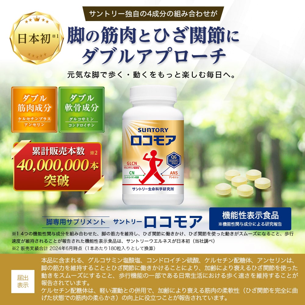 サントリー 公式 ロコモア 筋肉成分 軟骨成分 グルコサミン コンドロイチン ケルセチン アンセリン サプリメント サプリ 360粒入/約60日分