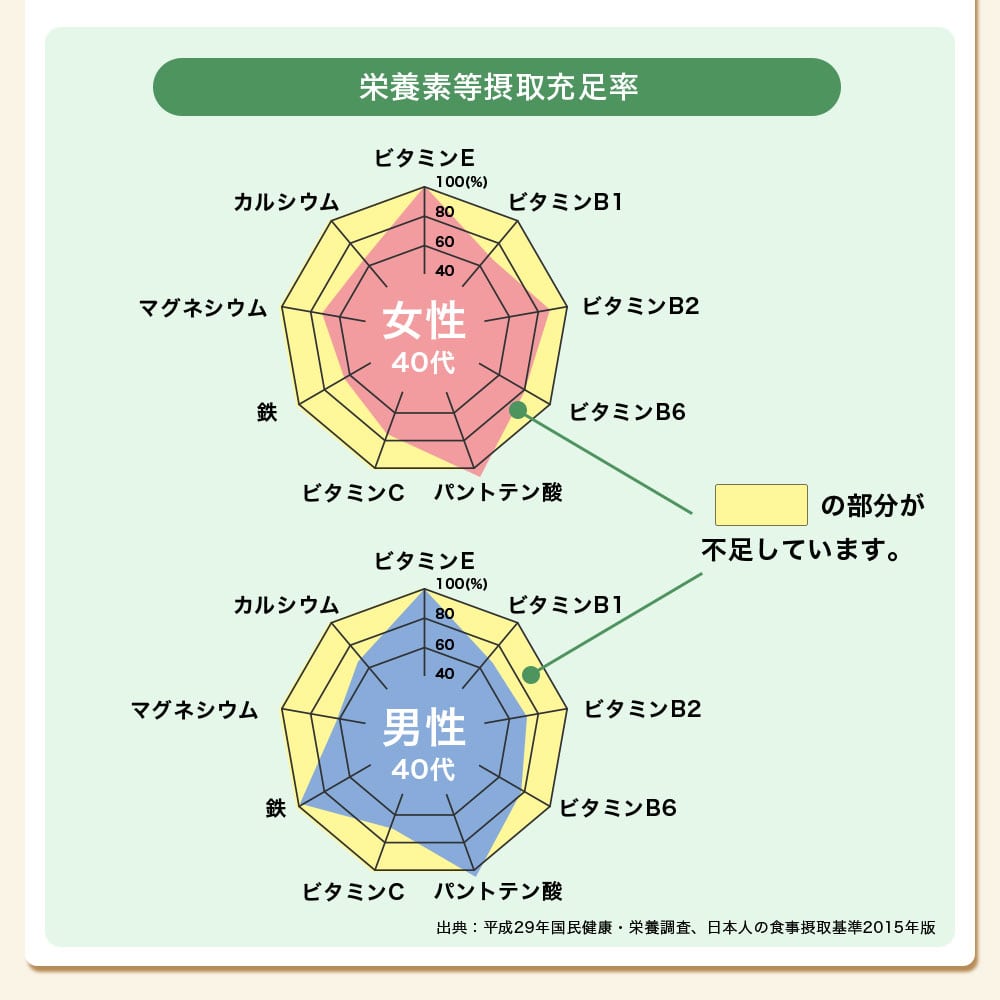 健康の基本となるビタミン・ミネラルは、ふだんから気をつけているつもりでも不足しがちです。
