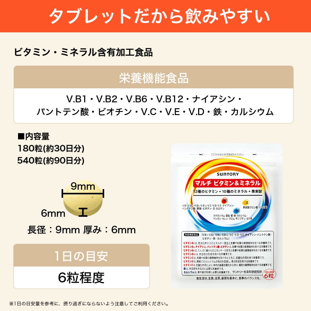 サントリー 公式 マルチ ビタミン&ミネラル 栄養機能食品 マルチビタミン ミネラル サプリメント サプリ 180粒入/約30日分