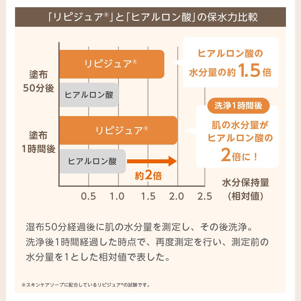 ダブルの保湿機能で、洗顔後の素肌をしっとりと保ちます。