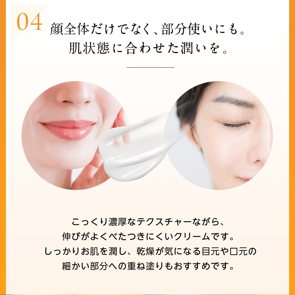 秋冬の乾燥がひどい時期、季節の変わり目や体調によって潤いに不安を感じるときは、モイストキープ クリームを重ねて保湿力を高めることをおすすめします。