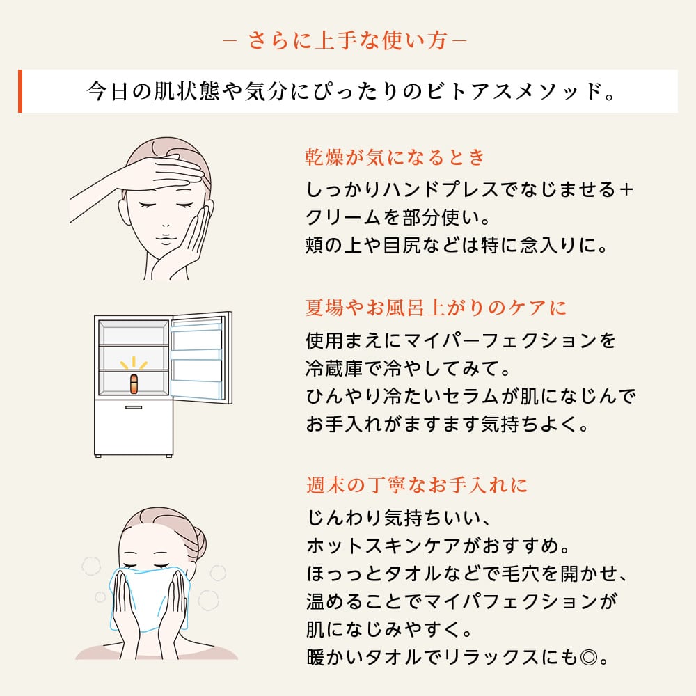 ハリを与える成分がたっぷり配合されているので、決して手抜きではない、手間暇かけたワンランク上の肌に。