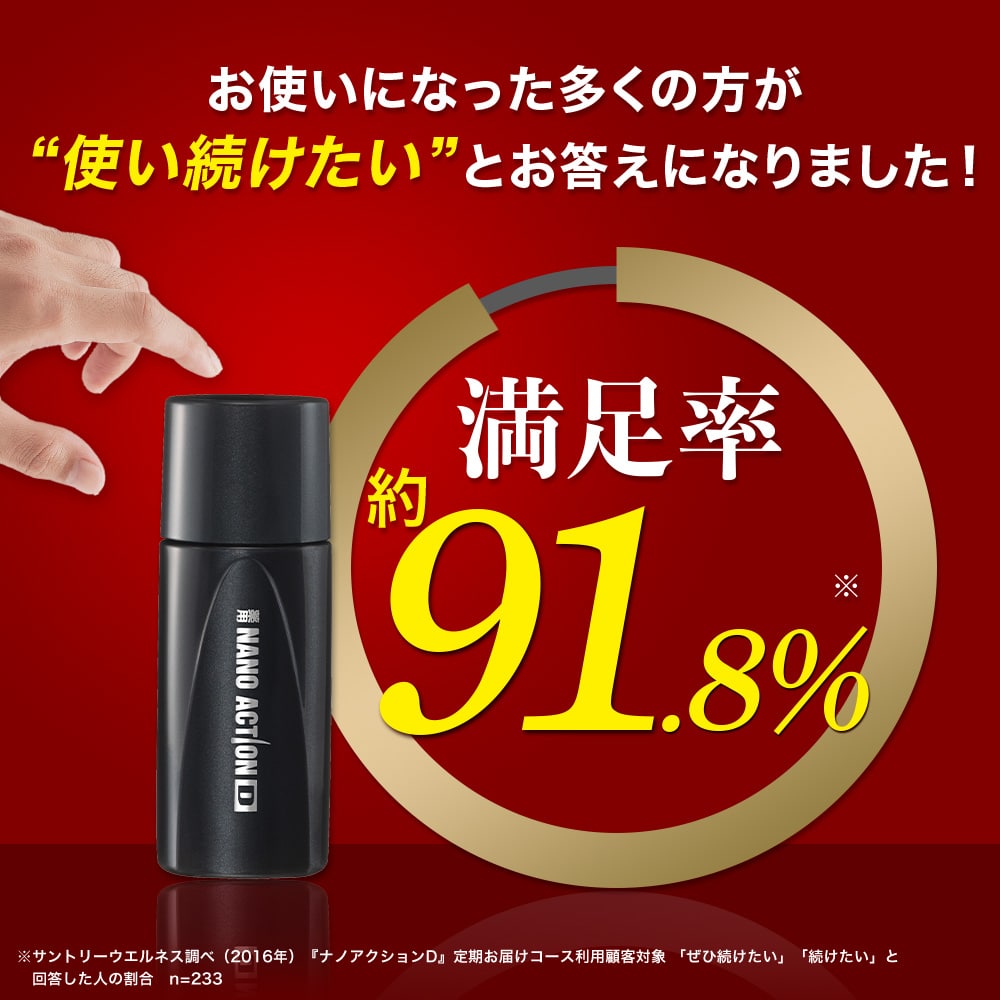 ※サントリーウエルネス調べ(2016年)『ナノアクションD』定期お届けコース利用顧客対象「ぜひ続けたい」「続けたい」と回答した人の割合 n=233