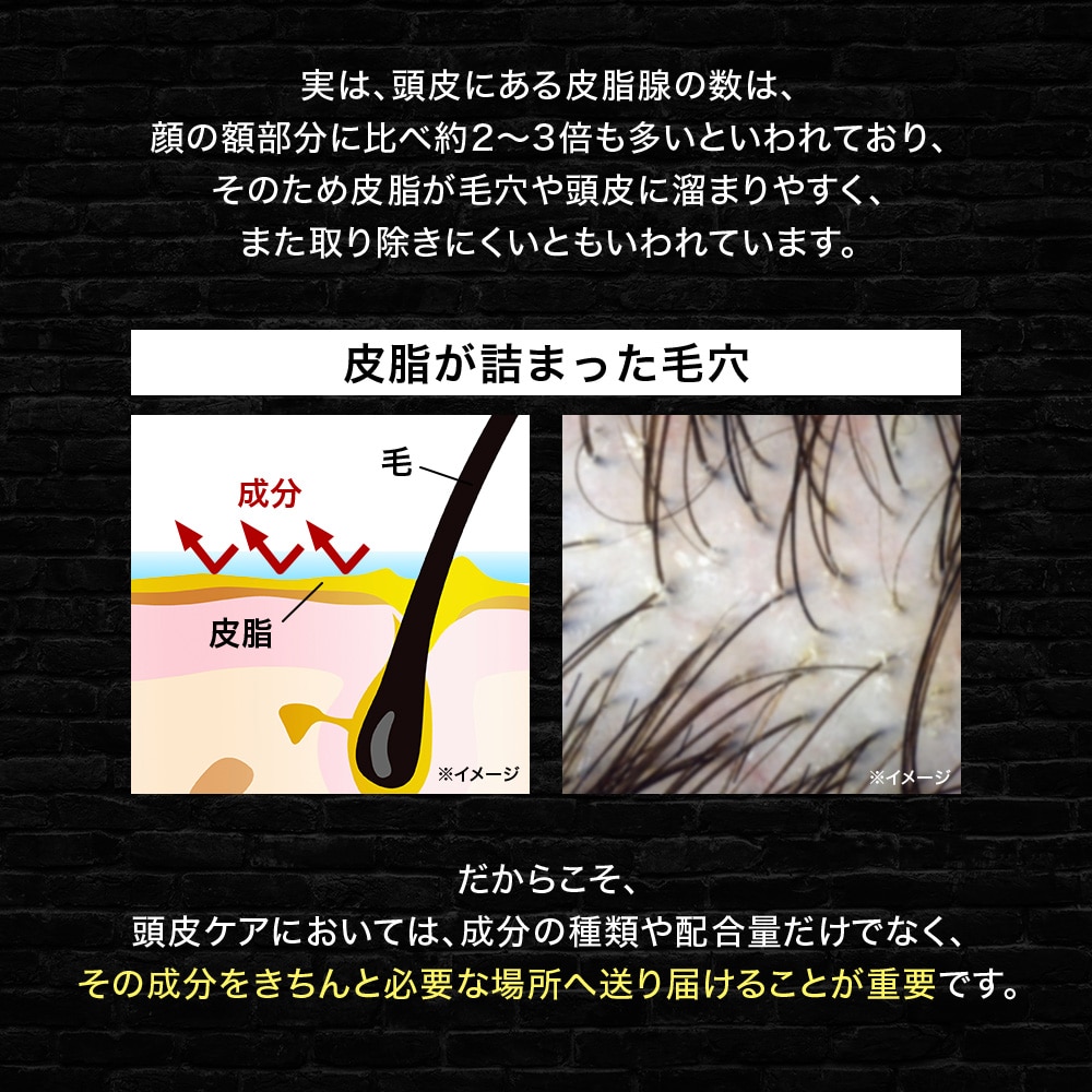せっかくの育毛ケアも、頭皮や毛穴の皮脂が邪魔して、成分が届かないと、その力を発揮できません。だから、“成分”だけでなく“浸透※1力”まで考えたケアが大切です。