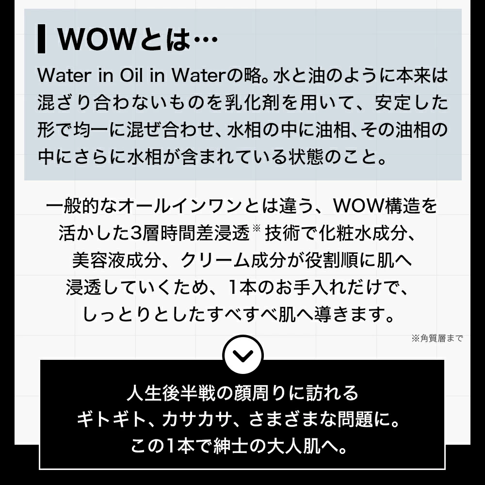 ギトギト、カサカサが気になる大人の男性の肌つやをしっとり整え、すべすべすこやか肌へ。