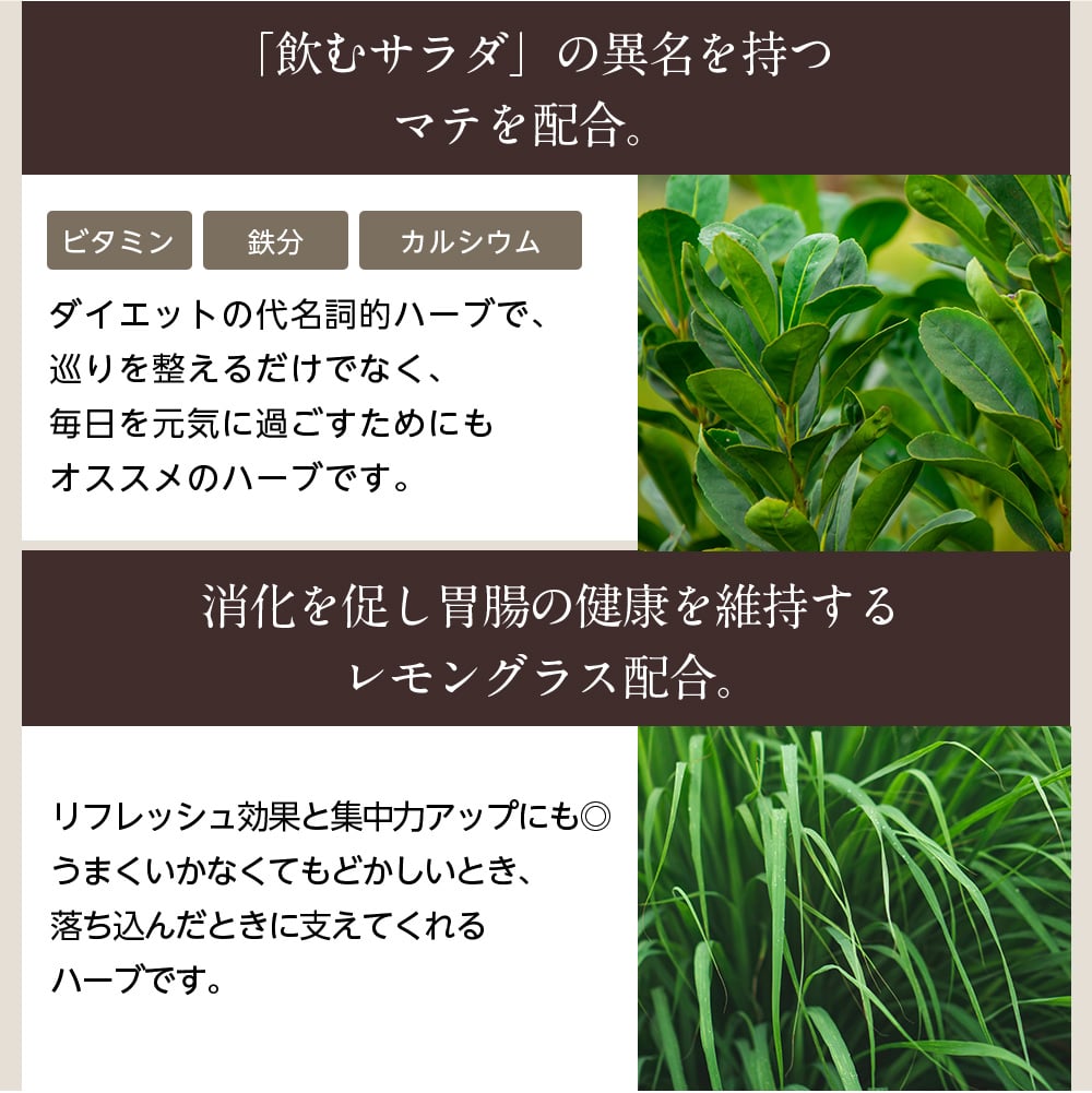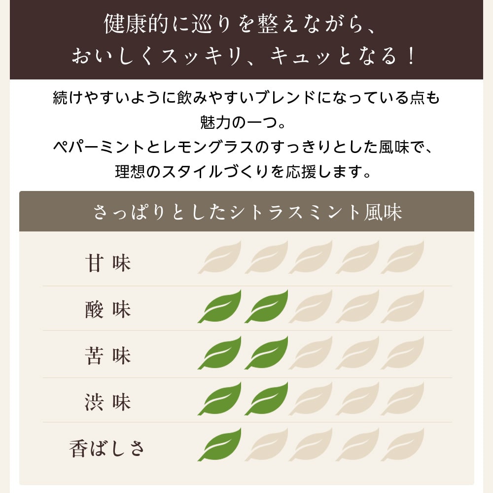 ペパーミントとレモングラスのすっきりとした風味で、理想のスタイルづくりを応援します。