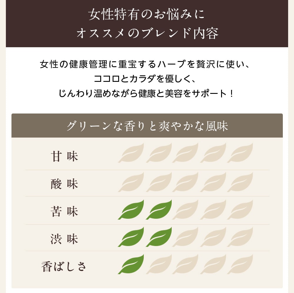 女性リズムを穏やかにサポートし、ココロとカラダを優しく支えてくれるでしょう。