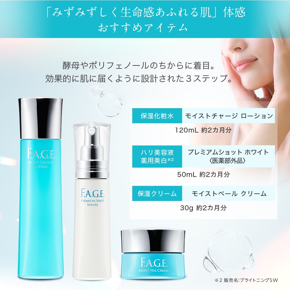 年齢とともに、気になる「かげり※3」。『プレミアムショット』に美白機能をプラスした『プレミアムショット ホワイト』で、気になる年齢肌※4のハリと美白ケアを。