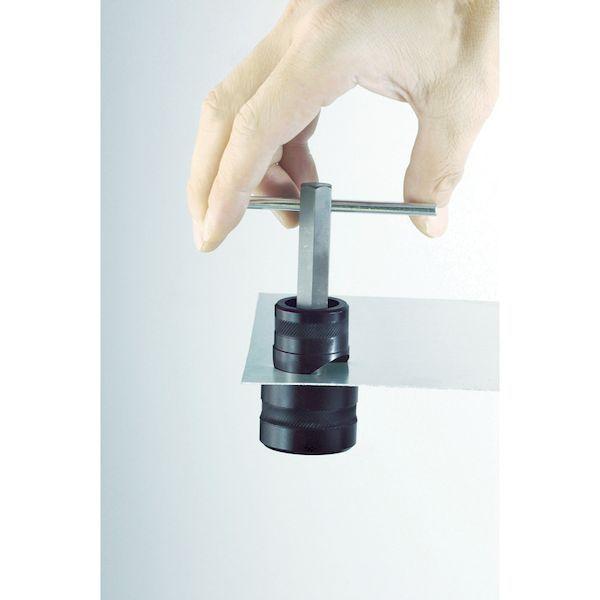 ホーザンメーカーお問い合わせ:06-6567-3132【特長】●片手で楽に穴あけが可能です。●3mm程度の穴があれば、手軽により大きなサイズに穴あけ加工ができます。【用途】●鉄板、アルミ板への大口径穴開け加工。【仕様】●穴あけ能力:アルミ板/板厚1.8mm以下、鉄板/板厚0.8mm以下●セット内容:カッター(16、18、21、25、30mm)、ウス、センターボルト、テーパリーマ(K-441)【セット内容/付属品】●カッター(16、18、21、25、30mm)、ウス、センターボルト、テーパリーマ【原産国】日本