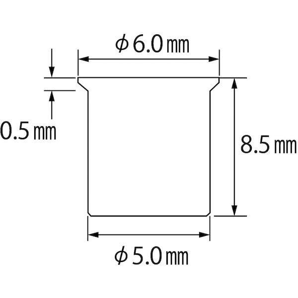 ロブテックスメーカーお問い合わせ:072-980-1111【特長】●エビナットはナットとリベットの機能を兼ね備えたブラインドファスナーです。●タップ立ての難しい薄材やパイプ・溶接のできないプラスチック板にも片側から簡単に取り付けることができます。●専用のエビ印ナッターを使用すれば、カシメ板厚に応じた適切なストローク調整ができ、均一な仕上がりとなります。【用途】●車の鋼板部、樹脂部(パーツなど)へのパーツ取り付けに。●エクステリアなどアルミ建材へのパーツ取り付けに。【仕様】●かしめ板厚(mm):1.0~2.0●下穴径(mm):5.1●適用ねじ:M3×0.50●ナット外径(mm):5●全長(mm):8.5●フランジ厚さ(mm):0.5【仕様2】●薄頭●箱入【材質/仕上】●スチール(SWCH)【原産国】日本