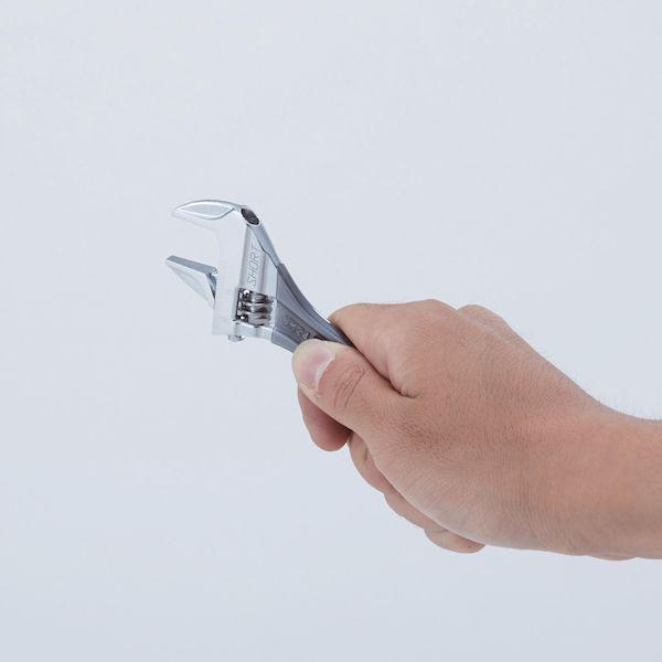 ロブテックスメーカーお問い合わせ:072-980-1111【特長】●ショートタイプのエビ印ハイブリッドモンキレンチです。●軽く、薄く、口開きワイドでスケルトングリップです。●ポケットにもすっぽり入る、手のひらサイズです。●込み入った狭い空間での作業に最適です。●目盛付です。【仕様】●色:ブルー●全長(mm):118●口開き(mm):0~24●最大口開き(mm):24●先端厚さ(mm):5ボルト・ナット最大寸法:M16【材質/仕上】●特殊鋼【注意】●電気が流れているものには使用しないでください。グリップには絶縁機能はありません。●口の奥でボルトやナットの二面に口幅を確実に合わせてください。●下アゴ方向に回してください。●ハンマー代わりに使用したり、ハンマー等で叩いたりしないでください。【原産国】日本