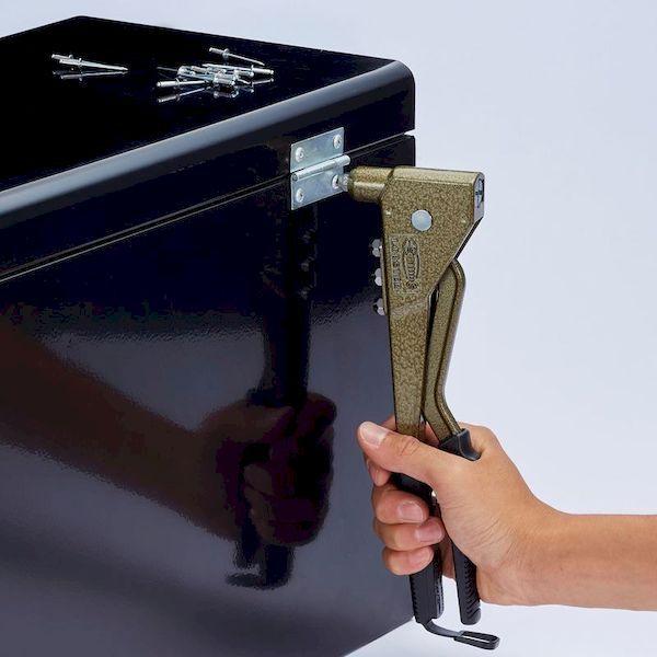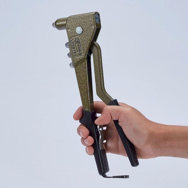 ロブテックスメーカーお問い合わせ:072-980-1111【特長】●ソフトグリップのハンドルは握りやすく設計されており、強いブラインドリベットも楽に切断できます。●握らなくてもリベットが落ちないリベット保持機能付です。●ハンドルの開きが握りやすいため、十分に力が入り、ブラインドリベットが楽に締結できます。【用途】●部材と母材のリベットでの締結に。【仕様】●全長(mm):273●使用ジョー:JS(小)●リベット径使用範囲(mm):2.4、3.2、4.0、4.8(NS/NSS/NSTは不可)【仕様2】●リベット保持機能付【セット内容/付属品】●ノーズピース:2.4、3.2、4.0、4.8●専用板スパナ【原産国】日本