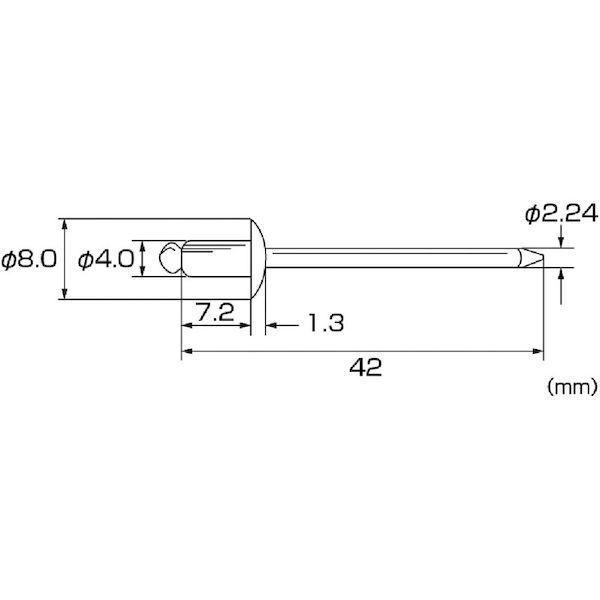 ロブテックスメーカーお問い合わせ:072-980-1111【特長】●片側から複数の母材をワン・アクションで締結できます。【用途】●自動車板金、電機板金など。【仕様】●かしめ板厚(mm):1.2~3.2●リベット長(mm):7.2●フランジ径(mm):8.0●リベット径(mm):4.0●下穴径(mm):4.1~4.2●せん断荷重(N):1550●引張荷重(N):2200●箱入数(本):1000【仕様2】●箱入●RoHS指令適合品【材質/仕上】●リベット本体(フランジ):アルミ(A5154)●マンドレル(シャフト):スチール(炭素鋼)【原産国】日本