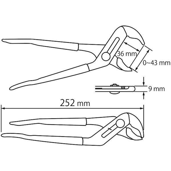 ロブテックスメーカーお問い合わせ:072-980-1111【特長】●ウォーターポンププライヤーのスケルトングリップタイプです。●工具管理に便利な6色グリップです。(グリーン、レッド、ブルー、イエロー、バイオレット、スモーク)【用途】●パイプなどの配管作業。●水道の蛇口など水回り作業。●ボルト・ナットの締め付け、取り外し。●線材のねじり、曲げ、引っ張り。●栓やビンのフタなどの開閉。【仕様】●最大口開き(mm):43●全長(mm):252●調整(段階):5●色:レッド【材質/仕上】●本体:スチール●グリップ:樹脂【注意】●不安定なくわえ方をしないでください。●電流が流れているものには使用しないでください。●ドライバーの先端を握って作業しないでください。【原産国】日本