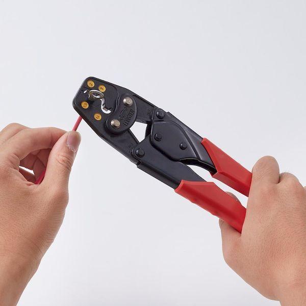 ロブテックスメーカーお問い合わせ:072-980-1111【特長】●平山のダイスにより圧着部はすき間なく圧着でき、通電性は万全です。●成形確認機構内蔵です。●JIS C9711適合品です。【用途】●電線の圧着・接続に。【仕様】●全長(mm):274●圧着端子([[MM2]])裸端子用:2、5.5、8、14【仕様2】●JIS C 9711規格品【材質/仕上】●本体:スチール●グリップ:樹脂【原産国】日本