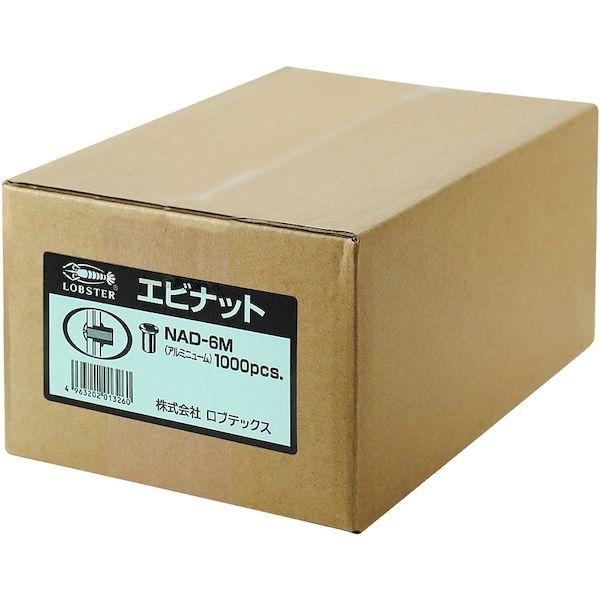ロブテックスメーカーお問い合わせ:072-980-1111【特長】●エビナットはナットとリベットの両方の長所を兼ねそなえた、ブラインドファスナーです。●タップ立ての難しい薄材やパイプ・溶接のできないプラスチック板にも片側から簡単に取り付けることができます。●専用のエビ印ナッターを使用すれば、カシメ板厚に応じた適切なストローク調整ができ、均一な仕上がりとなります。●タップ立ての難しい薄板やパイプ、角パイプ、溶接のできないプラスチック板にも、片側からワンアクションで簡単に、仕上がりも美しく取り付けられます。●専用のエビ印エアーナッター、電気ナッター、ハンドナッターを使えば誰でも確実に取り付けることができ、コストダウン及び作業の省力化に大きな威力を発揮します。【用途】●車の鋼板部、樹脂部(バンパーなど)へのパーツ取り付けに。●エクステリアなどアルミ建材へのパーツ取り付けに。●薄板にアクセサリーの取付け、パイプと平板の接続、農具・器具の水平出し等に【仕様】●かしめ板厚(mm):1.0~3.2●下穴径(mm):9.1●適用ねじ:M6×1.00●ナット外径(mm):9●全長(mm):16.1●フランジ厚さ(mm):1.5【仕様2】●箱入●平頭【材質/仕上】●アルミ(A5056)【原産国】日本