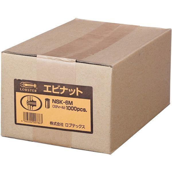 ロブテックスメーカーお問い合わせ:072-980-1111【特長】●エビナットはナットとリベットの機能を兼ね備えたブラインドファスナーです。●タップ立ての難しい薄材やパイプ・溶接のできないプラスチック板にも片側から簡単に取り付けることができます。●専用のエビ印ナッターを使用すれば、カシメ板厚に応じた適切なストローク調整ができ、均一な仕上がりとなります。【用途】●車の鋼板部、樹脂部(パーツなど)へのパーツ取り付けに。●エクステリアなどアルミ建材へのパーツ取り付けに。【仕様】●かしめ板厚(mm):1.0~2.5●下穴径(mm):9.1●適用ねじ:M6×1.00●ナット外径(mm):9●全長(mm):14.0●フランジ厚さ(mm):0.5【仕様2】●薄頭●箱入【材質/仕上】●スチール(SWCH)【原産国】日本