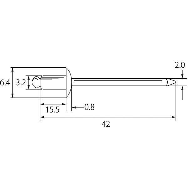 ロブテックスメーカーお問い合わせ:072-980-1111【特長】●片側から複数の母材をワン・アクションで締結できますので作業の省力化や生産性の向上に貢献します。【用途】●厨房機器、業務用冷蔵庫など。【仕様】●かしめ板厚(mm):9.5~12.7●リベット長(mm):15.5●フランジ径(mm):6.4●リベット径(mm):3.2●下穴径(mm):3.3~3.4●せん断荷重(N):2350●引張荷重(N):2700【仕様2】●箱入●RoHS指令適合品【材質/仕上】●リベット本体(フランジ):ステンレス(SUS305)●マンドレル(シャフト):ステンレス(SUS304相当材)【原産国】日本