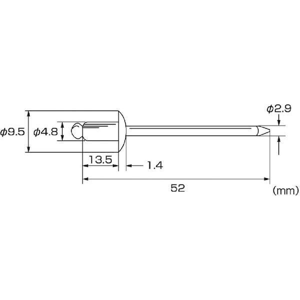 ロブテックスメーカーお問い合わせ:072-980-1111【特長】●片側から複数の母材をワン・アクションで締結できますので作業の省力化や生産性の向上に貢献します。【用途】●厨房機器、業務用冷蔵庫など。【仕様】●かしめ板厚(mm):6.4~9.5●リベット長(mm):13.5●フランジ径(mm):9.5●リベット径(mm):4.8●下穴径(mm):4.9~5.0●せん断荷重(N):5450●引張荷重(N):6350【仕様2】●箱入●RoHS指令適合品【材質/仕上】●リベット本体(フランジ):ステンレス(SUS305)●マンドレル(シャフト):ステンレス(SUS304相当材)【原産国】日本