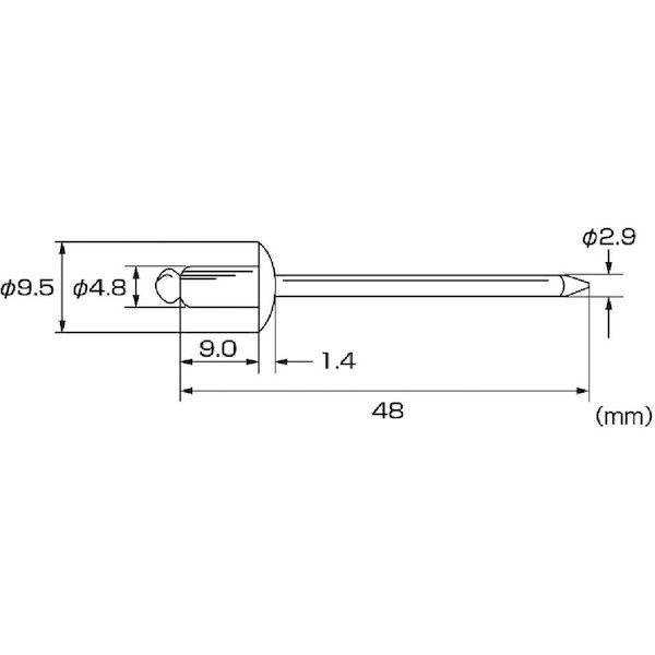 ロブテックスメーカーお問い合わせ:072-980-1111【特長】●片側から複数の母材をワン・アクションで締結できますので作業の省力化や生産性の向上に貢献します。【用途】●厨房機器、業務用冷蔵庫など。【仕様】●かしめ板厚(mm):1.6~4.8●リベット長(mm):9.0●フランジ径(mm):9.5●リベット径(mm):4.8●下穴径(mm):4.9~5.0●せん断荷重(N):5450●引張荷重(N):6350【仕様2】●箱入●RoHS指令適合品【材質/仕上】●リベット本体(フランジ):ステンレス(SUS305)●マンドレル(シャフト):ステンレス(SUS304相当材)【原産国】日本