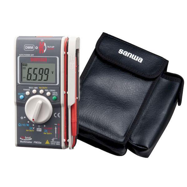 三和電気計器メーカーお問い合わせ:0120-51-3930●DCV4レンジ/ACV4レンジ/Ω6レンジ、デューティ比、ダイオード、導通ブザー●コンデンサ容量測定、周波数測定、直流および交流100Aまでのクランプ電流測定●LED測定可●最大値/ 最小値ホールドおよびデータホールド、リラティブ機能搭載●電源は何処でも入手可能な単4サイズを2本●表示:6600 サンプルレート:約3回/秒※DG36a、DG35a、DG34およびPM33aは背面に収納された厚さ7mmのU字型クランプによりDC/AC100Aまでの電流測定が可能。