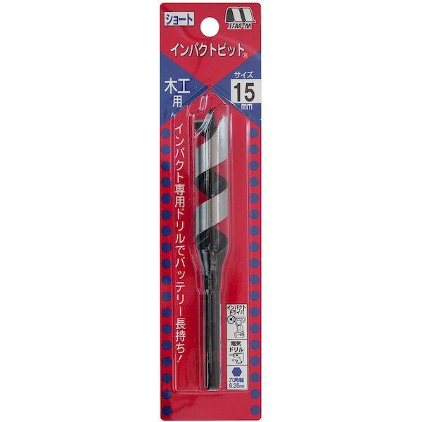 スターエムメーカーお問い合わせ:0794-82-0200【特長】●先ねじとケガキ刃の部分を従来のドリルよりも小さくすることにより、切削抵抗を抑えバッテリーの持ちが良くなりました。●インパクトドライバーでの使用に最適です。【用途】●被削材:木材。●浅い貫通穴用【仕様】●刃径(mm):15●溝長(mm):70●全長(mm):120●シャンク径(mm):6.35●適合機種:インパクトドライバー、ドリルドライバー、電気ドリル【材質/仕上】●炭素鋼(S55C)【原産国】日本