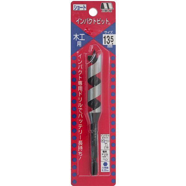 スターエムメーカーお問い合わせ:0794-82-0200【特長】●先ねじとケガキ刃の部分を従来のドリルよりも小さくすることにより、切削抵抗を抑えバッテリーの持ちが良くなりました。●インパクトドライバーでの使用に最適です。【用途】●被削材:木材。●浅い貫通穴用【仕様】●刃径(mm):13.5●溝長(mm):70●全長(mm):120●シャンク径(mm):6.35●適合機種:インパクトドライバー、ドリルドライバー、電気ドリル【材質/仕上】●炭素鋼(S55C)【原産国】日本