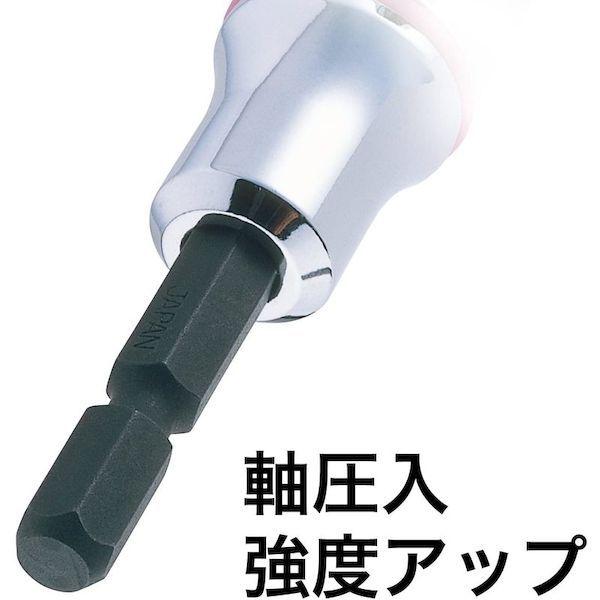 ベッセルメーカーお問い合わせ:0120-999-914【特長】●配管・配線支持金具取り付け他、六角ボルトナット締め付けに適しています。●特許・軸部圧入式構造でガタつき、軸抜けがありません。●面接触型6角ソケットです。●軸部とソケット部をそれぞれ最適な硬度で熱処理しているのでねじれに強い特性があります。【用途】●配管・配線支持金具取り付け他、六角ボルトナット締め付けに。【仕様】●軸寸法(mm):6.35●全長(mm):60●対辺寸法(mm):12【仕様2】●18Vインパクト対応【材質/仕上】●クロムバナジウム鋼(Cr-V)【原産国】日本