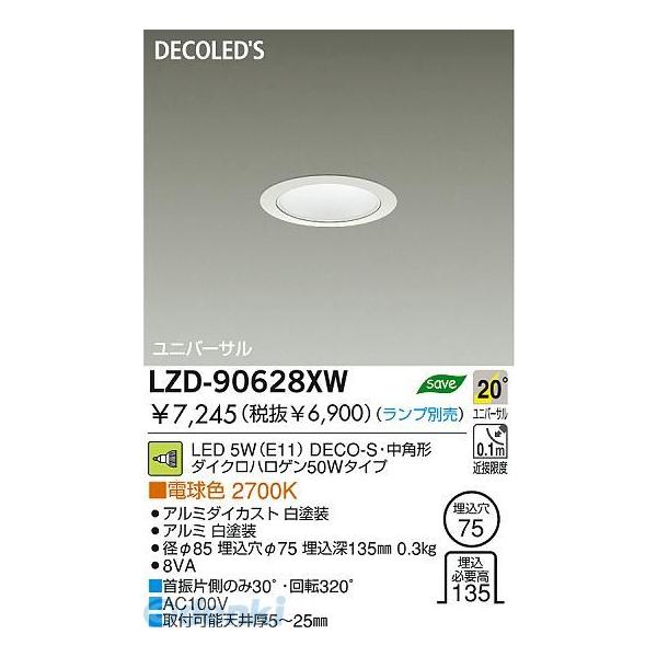 大光電機メーカーお問い合わせ:0570-003-937【商品説明】●この商品はランプ別売です。[適合ランプ]●LEDランプ 中角形20°LZA-90681 (5.6W/E11/ホワイト)LZA-90682 (5.6W/E11/ブラック)●LEDランプ 広角形30°LZA-90683 (5.6W/E11/ホワイト)LZA-90684 (5.6W/E11/ブラック)[適合調光器]LZA-90306E LED専用調光器LZA-90637E LED専用調光器