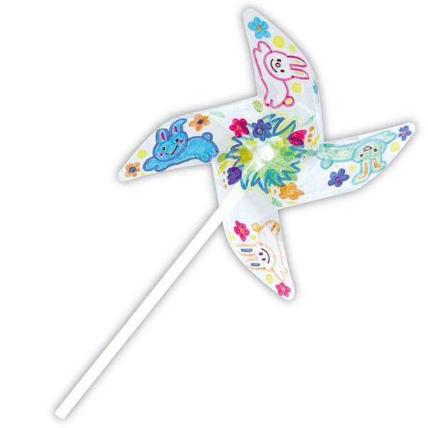 ●商品はイメージです(※工作例の場合があります)おえかきクリアかざぐるまのミニタイプが新登場!!組み立て簡単!!とてもよくまわる!!透明板(切り取り加工済み)×1、ふた×1、キャップ×1、ポール(φ7×200mm)×1完成サイズ/約φ198mmPP