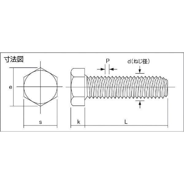 コノエメーカーお問い合わせ:06-6746-1101【特長】●一般的な六角ボルトで幅広く使用されています。●一般的にボルトと言うと六角ボルトのことを指します。【用途】●通常単体で使用せず、六角ナットと組み合わせて部材を両側から挟み込むように使用【仕様】●寸法(mm)d:M10●寸法(mm)L:70●ねじピッチ(mm):1.50●ねじ長さ(mm):70●強度区分:4.8●首下長(mm):70●対角寸法(mm):19.6●六角部高さ(mm):7●六角部対辺(mm):17●ねじ径(mm):10【材質/仕上】●冷間圧造用炭素鋼線材(SWCH)●表面処理:ユニクロムメッキ仕上げ【原産国】日本