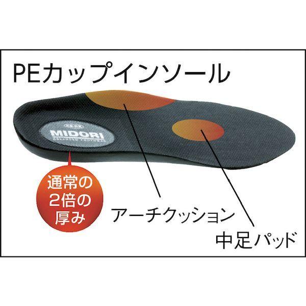 ミドリ安全メーカーお問い合わせ:048-989-3177【特長】●優れたクッション性と足裏にフィットする立体成形によりハイクラスの履き心地を実現します。●レザースニーカータイプのスタイリッシュなデザインです。●クッション性に優れた素材を2倍の厚みにした、特別なカップインソールを使用しています。●JIS耐滑性能「F」合格の滑りにくい靴底です。●親指をまっすぐに伸ばして、快適に着用できるワイド樹脂先芯を使用しています。【仕様】●寸法(cm):25.5●足幅サイズ:EEE●色:ブラック●耐圧迫荷重(kN):10±0.1●US(アメリカ)規格サイズ:7.5●UK(イギリス)規格サイズ:7.5●EU(ヨーロッパ)規格サイズ:41【仕様2】●JIS T8101 C1/S/P1/F1●耐圧迫性荷重:10±0.1kN【材質/仕上】●甲被:牛クロム革(ソフト型押)●先芯:ワイド樹脂●靴底:発泡ポリウレタン2層【注意】●中敷きを交換する場合は、ミドリ安全が推奨する同等品を使用してください。(JIS T8101安全靴の規定より)【原産国】日本