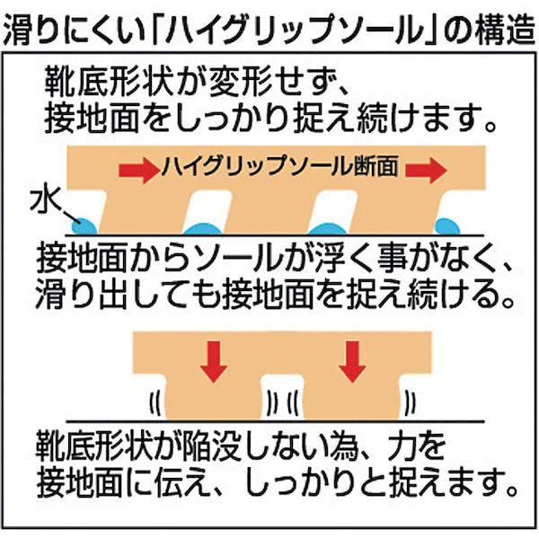 ミドリ安全メーカーお問い合わせ:048-989-3177【特長】●水や油で滑りやすい床面での作業に適した滑りにくいハイグリップソールです。●抗菌・防臭加工のインソールを使用しています。●異物などが目詰まりしにくい靴底です。●軽量でクッション性に優れているので、長時間の立ち作業でも疲れにくいです。●足先が広く、屈曲性も良い歩きやすい設計です。【仕様】●寸法(cm):26.5●足幅サイズ:EEE●色:ブラック●動摩擦係数:0.30以上●US(アメリカ)規格サイズ:8.5●UK(イギリス)規格サイズ:8.5●EU(ヨーロッパ)規格サイズ:43【材質/仕上】●甲被:人工皮革●靴底:EVA/合成ゴム【原産国】ベトナム