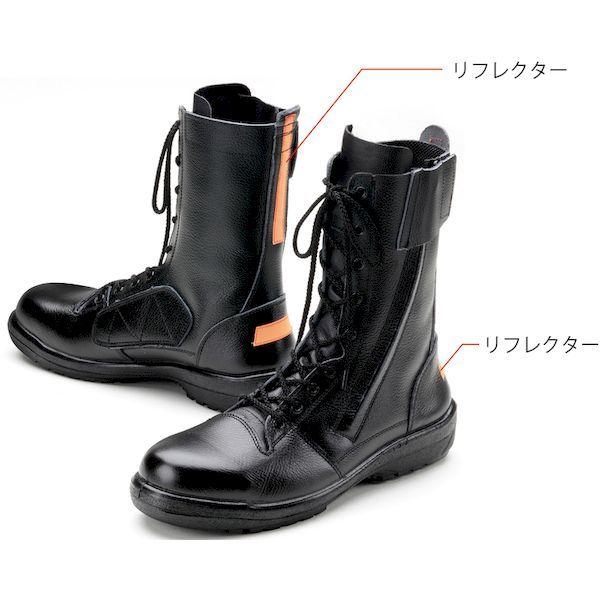 ミドリ安全メーカーお問い合わせ:048-989-3177【特長】●踏み抜き事故から足裏を守るステンレス製の踏抜き防止板を内装しています。●全国の消防本部、消防団で履かれている消防仕様なので防災、救助に最適です。●ゴム底の耐熱性、耐久性はそのままに、発泡ゴムとの2層底で優れたクッション性と軽量化を実現しました。●環境区分最高レベルの低湿度環境でも安定した静電気除去性能を発揮します。(JIS静電気帯電防止性能C1合格)●JIS耐滑性能「F」合格の滑りにくい靴底です。●親指をまっすぐに伸ばして、快適に着用できるワイド樹脂先芯を使用しています。【仕様】●寸法(cm):24.5●足幅サイズ:EEE●色:ブラック●電気抵抗値:1.0×10[[の5-8乗]]Ω(23℃ C1)●US(アメリカ)規格サイズ:6.5●UK(イギリス)規格サイズ:6.5●EU(ヨーロッパ)規格サイズ:39【仕様2】●JIS T8103 (ED-P/C1)/C1/S/P3/F1/HI1●JIS T 8103 ED-P/C1合格(一般静電靴)●耐圧迫性荷重:10±0.1kN●色:ブラック【材質/仕上】●甲被:牛クロム革(ソフト型押)●先芯:ワイド樹脂●靴底:合成ゴム2層●踏抜き防止板:ステンレス【原産国】日本