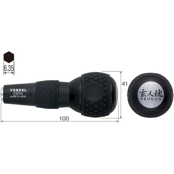 ベッセルメーカーお問い合わせ:0120-999-914【特長】●電動ドライバー用ビット(対辺6.35mm)を差し込むと使い慣れたボールグリップドライバーとしてお使いいただけます。【用途】●プラマイビットからバリトリビットまで何でもOK。ちょっとしたネジ締めやバリ取り。また、手締めでの増し締め確認などに。【仕様】●全長(mm):100●グリップ径(mm):41【材質/仕上】●ポリプロピレン●エラストマー【注意】●クッションリングがついたビットは使用できません。●全長40mm以下のビットは使用できません。【原産国】日本