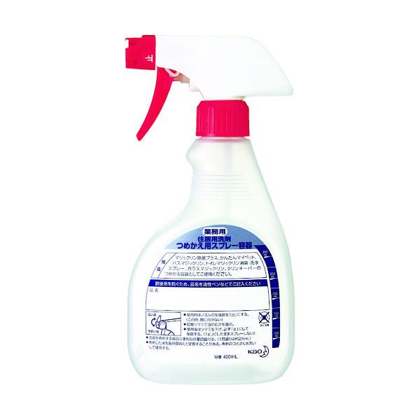 カオウメーカーお問い合わせ:0120-165-693【特長】●安心して使える専用詰め替え容器です。【用途】●マジックリン除菌プラス、かんたんマイペット、バスマジックリン、トイレマジックリン消臭・洗浄スプレー、ガラスマジックリン、クリンキーパー用。【仕様】●容量(ml):400【材質/仕上】●ポリエチレン(046901)、ポリプロピレン(500564)【原産国】日本