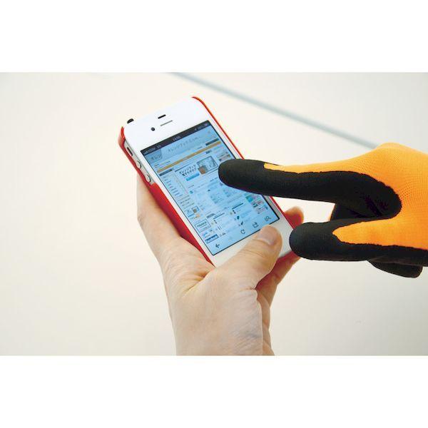 【特長】●導電糸入りで、タッチパネル操作が可能です。●耐摩耗性に優れたニトリルゴムコーティングを施しています。【用途】●土木建築業、タッチパネル操作に。【仕様】●色:オレンジ●サイズ:L●厚さ(mm):1.5●全長(cm):24.0●手のひら周り(cm):18.0●中指長さ(cm):8.5【仕様2】●13ゲージ編【材質/仕上】●繊維部:ナイロン●すべり止め部:ニトリルゴム【原産国】中国