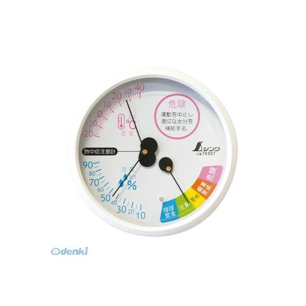 シンワ測定メーカーお問い合わせ:0120-666-899●温度と湿度の測定に使用する温湿度計●熱中症レベルを5段階で表示します。●裏面にフック穴が付いています。●温度計精度 ●-20~40℃:±2℃●測定範囲 ●温度計:-20~40℃ ●湿度計:10~90%●湿度計精度 ●35~75%:±5% ●それ以外:±10%●1目盛 ●温度計:2℃ ●湿度計:5%●目盛板カバー:ポリスチレン樹脂●針:アルミ